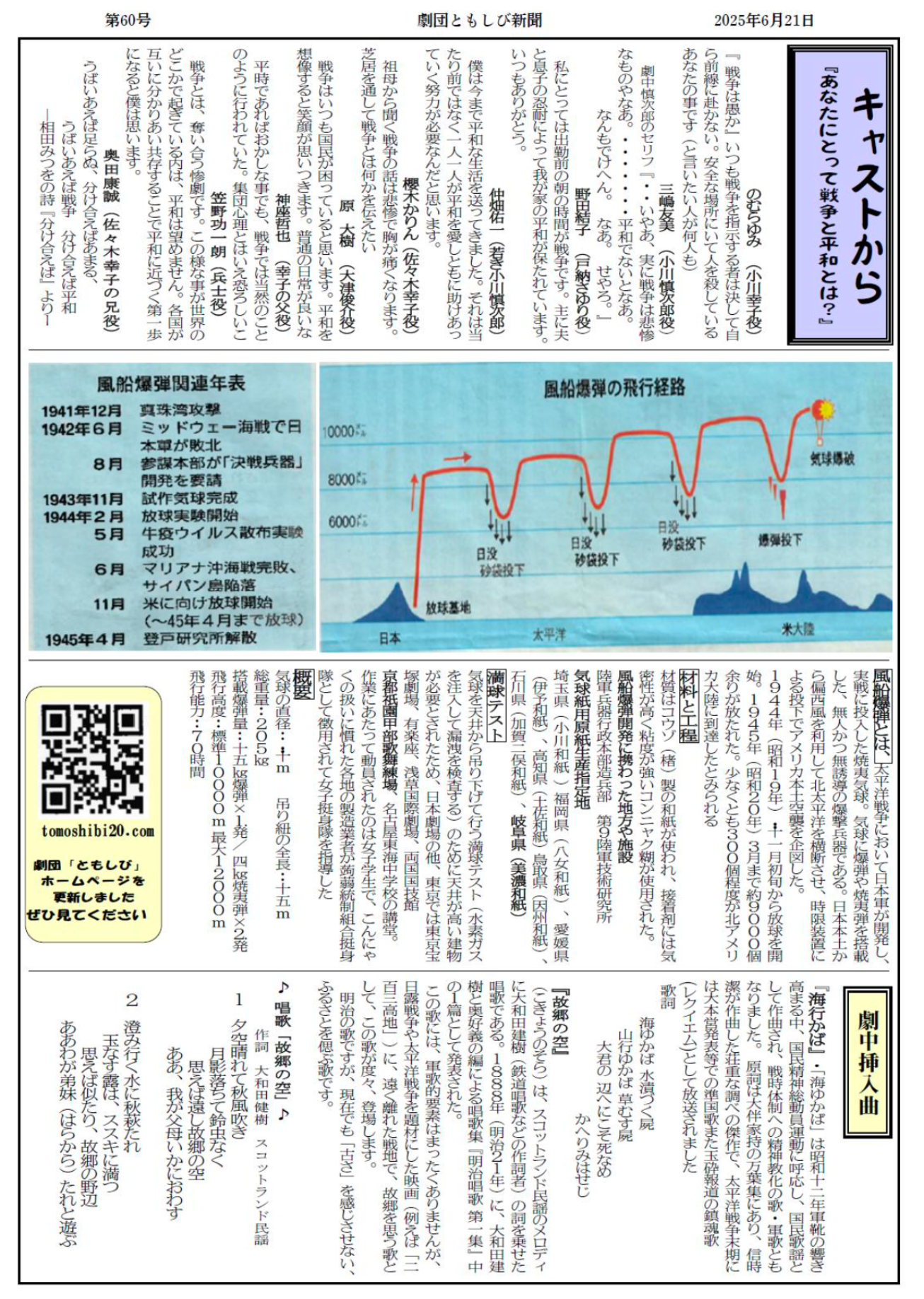 私は40代で、中学二年の娘と観に来ましたが、自分も風船爆弾の事を知らず、知ることが出来て、娘も観ることが出来て良かったです。いい作品を有難うございました。次回も楽しみにしています。